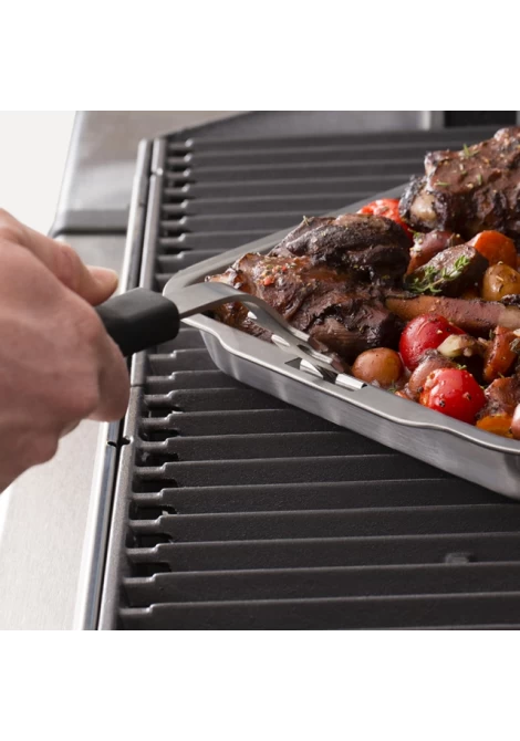 Αυτό το ανοξείδωτο ταψί έχει πολλές χρήσεις πάνω στην ψησταριά.