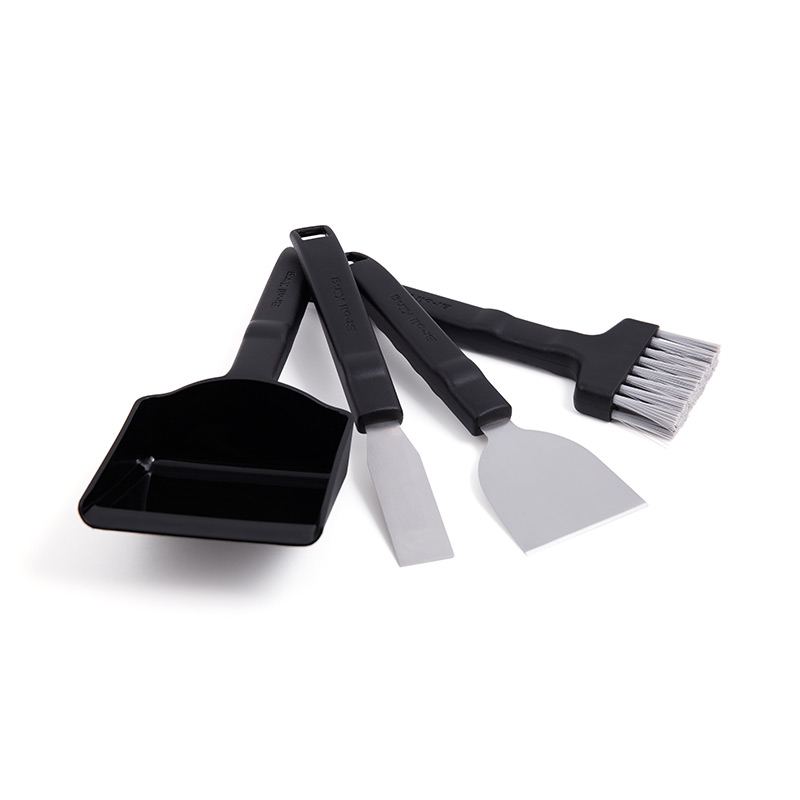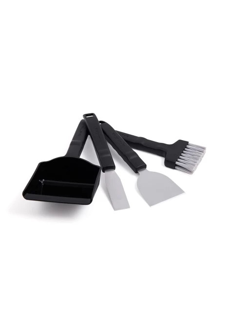 Tο κιτ καθαρισμού για ψησταριές pellet της Broil King, διαθέτει όλα τα εργαλεία που χρειάζεστε για να διατηρήσετε την ψησταριά σας καθαρή, σαν καινούργια! Χρησιμοποιήστε τη βούρτσα καθαρισμού και το φτυαράκι, για να συλλέξετε την σταχτή και τα ξεραμένα υπολείμματα τροφών, που δημιουργούνται κατά το ψήσιμο. Το σετ διαθέτει δύο ξύστρες, μια με πλατιά λεπίδα που θα αφαιρέσει εύκολα τα υπολείμματα τροφών από τα τοιχώματα της ψησταριάς σας και μια με στενή λεπίδα για να καθαρίσετε ευκολότερα εσοχές και μικρότερες επιφάνειες. Όλα τα εργαλεία διαθέτουν ανθεκτικές λαβές από ρητίνη ενώ οι ξύστρες, διαθέτουν λεπίδες από ανοξείδωτο Ατσάλι. Μπορεί να χρησιμοποιηθεί και για τον καθαρισμό των ψησταριών υγραερίου και κάρβουνου!