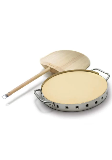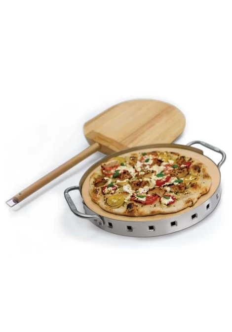 Ιδανικό για τους λάτρεις της πίτσας, το σετ πίτσας της Broil King αποτελείται από μια ανοξείδωτη βάση με μεγάλες ανοξείδωτες λαβές και μια πέτρα πίτσας διαμέτρου 34 εκ. ιδιαίτερα ανθεκτική στις απότομες αλλαγές της θερμοκρασίας. Επίσης, η πέτρα είναι διπλής όψεως ώστε από την άλλη πλευρά να μπορείτε να ψήσετε και ψωμί. Στη συσκευασία περιλαμβάνεται και ένα ξύλινο φτυάρι για να αφαιρείτε την πίτσα από την πέτρα, ειδικά σχεδιασμένο για να μην γλιστρά η πίτσα από την πέτρα καθώς βγαίνει από το μπάρμπεκιου.