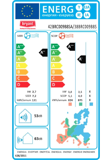 Bryant Aqua Evolution 42BRC009B8SA/38BRC009B8S Kλιματιστικό Τοίχου