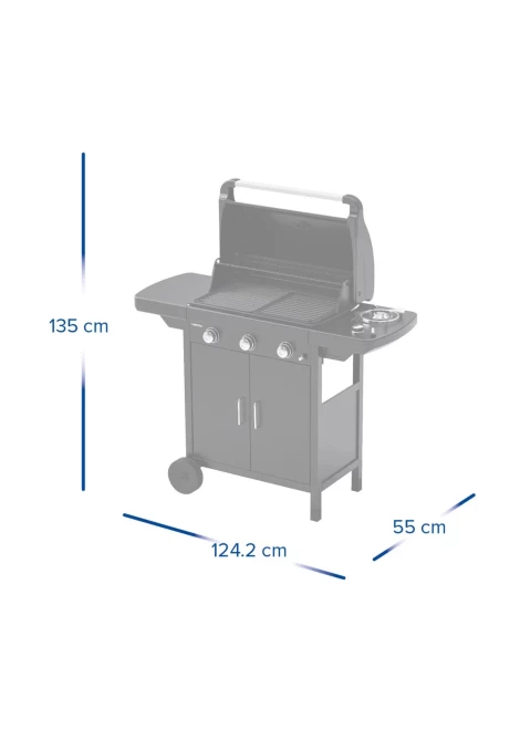 Η ψησταριά διαθέτει ενσωματωμένο πλευρικό καυστήρα ισχύος 2,1kW, την πλέον κατάλληλη εστία για τα λαχανικά, τις σάλτσες και τα συνοδευτικά σας. Εύχρηστη και εύκολη στη λειτουργία της, η Compact 3 EXS χρησιμοποιεί σύστημα ανάφλεξης με πιεζοηλεκτρικό αναπτήρα (άμεσο και γρήγορο άναμμα).