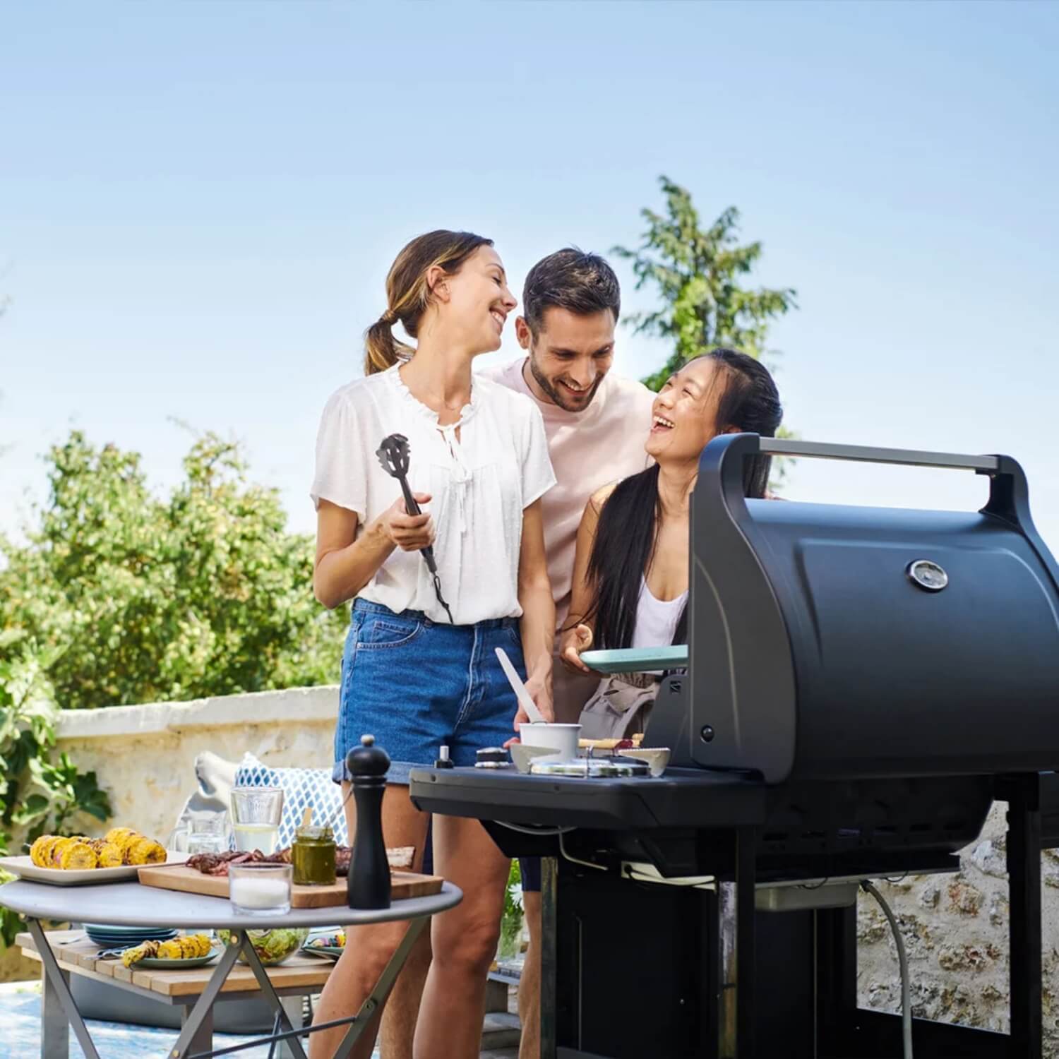 Χάρη στο πρακτικό θερμόμετρο που είναι ενσωματωμένο στο καπάκι της ψησταριάς υγραερίου, ελέγχετε άμεσα τη θερμοκρασία κατά το ψήσιμο.