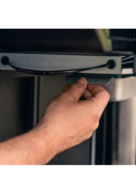 Με στόχο να σας διευκολύνει κατά την προετοιμασία του φαγητού σας, η βάση της Compact 3 L περιλαμβάνει δύο πτυσσόμενα πλαϊνά τραπέζια με άγκιστρα. Στον χώρο που διαθέτει στο μπροστινό τμήμα της και λειτουργεί ως ράφι, τοποθετήστε όλα τα καρυκεύματα που χρειάζεστε για το ψήσιμο και το μαγείρεμά σας.