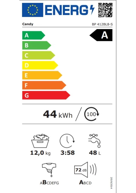 Χάρη στη μειωμένη κατανάλωση ενέργειας, το Candy είναι 20% πιο αποδοτικό* από ένα τυπικό πλυντήριο ρούχων κατηγορίας «Α». *σε σύγκριση με την οριακή τιμή της κατηγορίας Α σύμφωνα με τον κατ' εξουσιοδότηση κανονισμό (ΕΕ) 2019/2014 της Επιτροπής