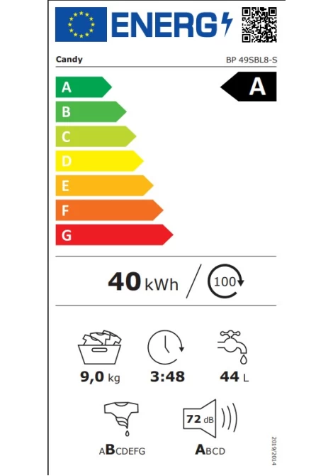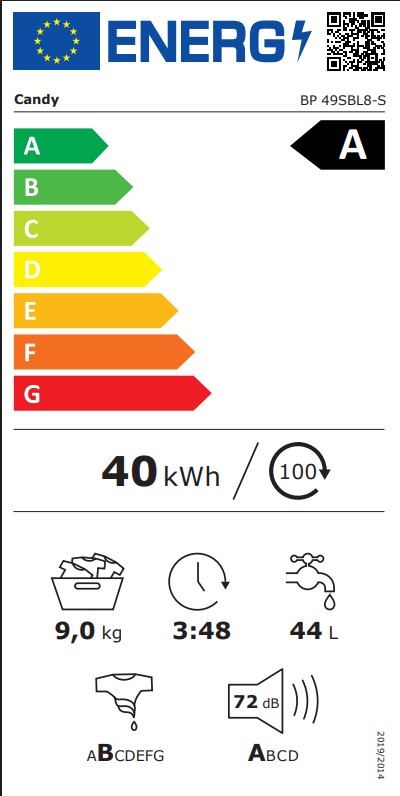 Χάρη στη μειωμένη κατανάλωση ενέργειας, το Candy είναι 20% πιο αποδοτικό* από ένα τυπικό πλυντήριο ρούχων κατηγορίας «Α». *σε σύγκριση με την οριακή τιμή της κατηγορίας Α σύμφωνα με τον κατ' εξουσιοδότηση κανονισμό (ΕΕ) 2019/2014 της Επιτροπής