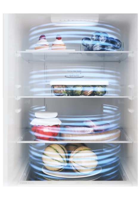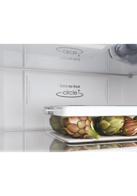 Χάρη στην τεχνολογία Total No Frost Circle + , διατηρείται διαρκώς ομοιογενής και σταθερή θερμοκρασία και υγρασία σε κάθε ράφι και γωνία του θαλάμου ψύξης. Η πλευρική ροή αέρα, διατηρεί το φαγητό σας φρέσκο για μεγαλύτερο χρονικό διάστημα, σε όποιο σημείο και αν το τοποθετήσετε.