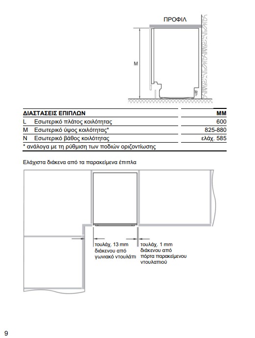 Εντοιχιζόμενο / ΕλεύθεροΠλήρως εντοιχιζόμενο