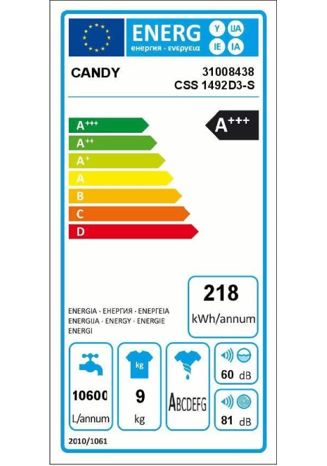 Candy CSS1492D3-S Πλυντήριο Ρούχων Ατμού