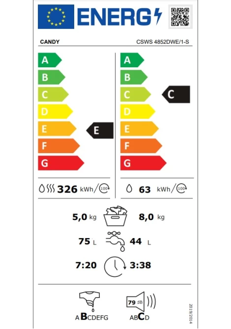 Αυτό το πλυντήριο-στεγνωτήριο ρούχων, σε κύκλο πλύσης, διαθέτει Ενεργειακή Απόδοση C, συμμορφώνεται με τη Νέα Ενεργειακή Ετικέτα και συγκριτικά με την κατηγορία G, μειώνει την κατανάλωση τουλάχιστον κατά 34%, εξοικονομώντας ενέργεια, χρήματα και λειτουργεί με απόλυτο σεβασμό προς το περιβάλλον.