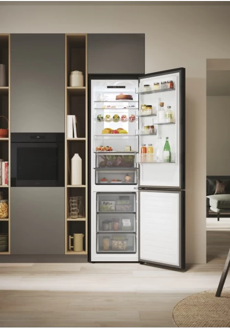 Αυτό το ψυγείο Combi 60 cm έχει χωρητικότητα 409 λίτρων και προσφέρει χώρο αποθήκευσης για εως 21 σακούλες παντοπωλείου. Επιπλέον, χάρη στα μεγάλα συρτάρια κατάψυξης έχετε επιπλέον χώρο για ογκώδη αντικείμενα. Η σύγκριση αποσκοπεί μόνο στο να καταστήσει άμεσα κατανοητή την πραγματική χωρητικότητα του προϊόντος, υποθέτοντας ότι οι σακούλες αγορών είναι γεμάτες μέχρι τη χωρητικότητά τους και ότι το περιεχόμενό τους μπορεί να αποθηκευτεί σε οποιοδήποτε περιοχή του προϊόντος. Δεν συνιστάται η υπερφόρτωση του προϊόντος, το προϊόν πρέπει να χρησιμοποιείται σύμφωνα με το εγχειρίδιο χρήσης. Χωρητικότητα για σακούλες με βάση τον όγκο μεσαίου μεγέθους για σακούλες στο Ηνωμένο Βασίλειο (πηγή: Environment Agency of UK Government, 2011). Η χωρητικότητα του ψυγείου υπολογίζεται σε μια τυπική ρύθμιση χρήσης με όλα τα ράφια και τα αξεσουάρ στη θέση τους.