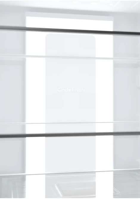 Η τεχνολογία Circle Fresh έχει σχεδιαστεί για να διατηρεί τη γεύση, την υφή και τη φυσική φρεσκάδα των τροφίμων σας για μεγαλύτερο χρονικό διάστημα. Δημιουργώντας ιδανικές συνθήκες συντήρησης, βοηθά τα τρόφιμα να παραμένουν ζουμερά, θρεπτικά και ελκυστικά, διατηρώντας τα ποιοτικά χαρακτηριστικά τους. Χάρη στην προηγμένη τεχνολογία πλευρικής ροής αέρα, ο ψυχρός αέρας κατανέμεται ομοιόμορφα σε όλο το εσωτερικό του ψυγείου. Με αυτόν τον τρόπο διατηρείται σταθερή θερμοκρασία σε κάθε σημείο, αποφεύγονται οι απότομες μεταβολές και εξασφαλίζονται οι ιδανικές συνθήκες για τη σωστή συντήρηση όλων των τροφίμων. Παράλληλα, η ομοιόμορφη κυκλοφορία του αέρα συμβάλλει στην αποφυγή του στεγνώματος των τροφίμων, διατηρώντας τη φυσική τους υγρασία και φρεσκάδα. Έτσι, φρούτα, λαχανικά και άλλα ευαίσθητα προϊόντα παραμένουν φρέσκα, γευστικά και έτοιμα για κατανάλωση για περισσότερο χρόνο.