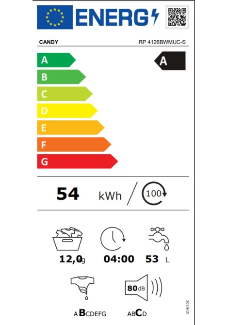 Candy RP 4126BWMUC-S RapidÓ PRO Πλυντήριο Ρούχων