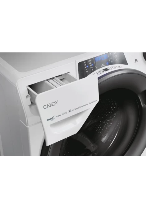 Το Candy RapidÓ PRO είναι το πλυντήριο ρούχων που έχει σχεδιαστεί για να σας εξοικονομεί χρόνο με εξαιρετικά αποτελέσματα πλύσης: χάρη στον καινοτόμο κινητήρα Speed-Drive και το σύστημα Quick&Clean μπορείτε να πλύνετε με πλήρες φορτίο σε μόλις 39 λεπτά. Διαθέτει επίσης το νέο πρόγραμμα Steam Hygiene Plus, δοκιμασμένο και εγκεκριμένο από το British Allergy Foundation, το οποίο εγγυάται βαθύ καθαρισμό.