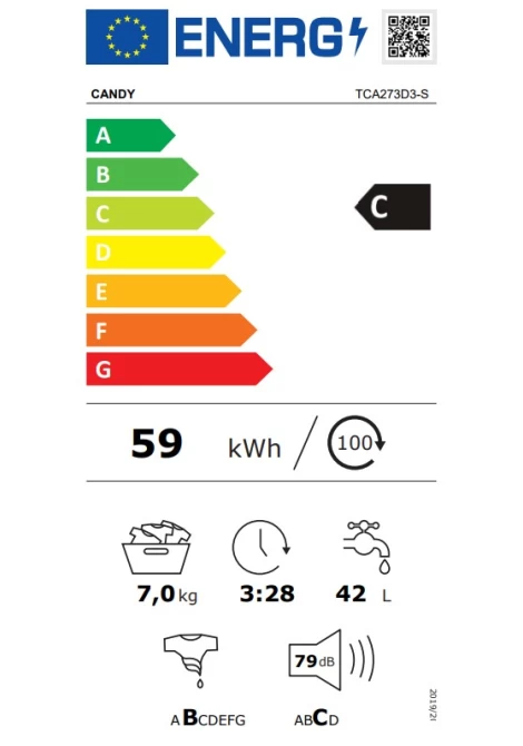 Χάρη στη βελτιωμένη ενεργειακή απόδοση των μοντέλων κινητήρων AC, το Candy άνω φόρτωσης μπορεί να φτάσει μέχρι την κατηγορία C για επιπλέον οικονομία.