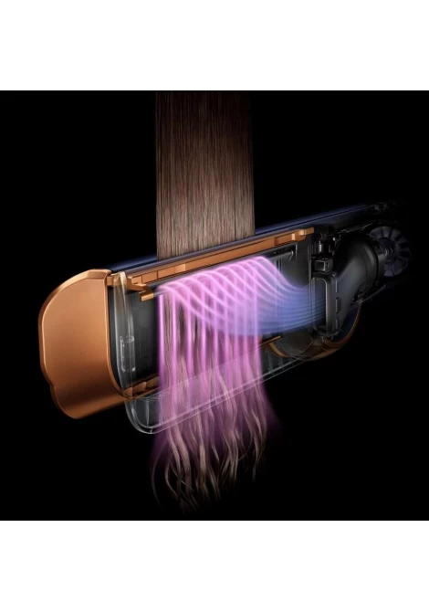 Η νέα τεχνολογία περιποίησης μαλλιών της Dyson, χρησιμοποιεί ροή αέρα υψηλής πίεσης για να ισιώνει τα μαλλιά καθώς στεγνώνουν. Ο αέρας θερμαίνεται με ακρίβεια και προβάλλεται ομοιόμορφα στα μαλλιά κατά τη διάρκεια του styling - χωρίς εξάρτηση από την υπερβολική θερμότητα.1