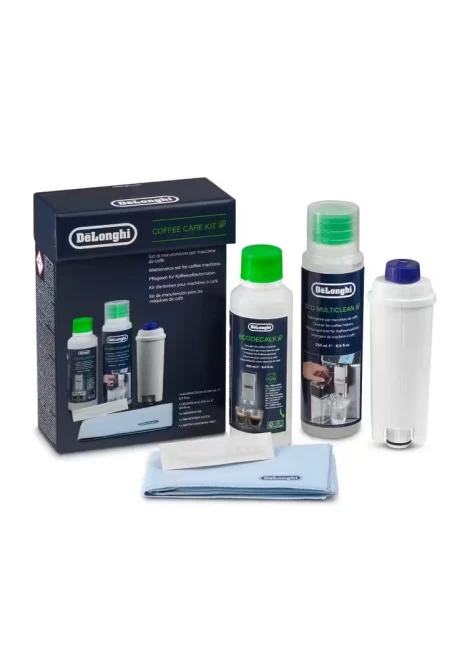 Φροντίστε την αυτόματη μηχανή καφέ De'Longhi με αυτό το Coffee Care Kit, που περιλαμβάνει φίλτρο νερού, EcoDecalk, Eco MultiClean, πανί από μικροΐνες και δοκιμή σκληρότητας νερού. Ένα απαραίτητο κιτ για τον καθαρισμό και τη συντήρηση της μηχανής καφέ σας De'Longhi, που βοηθά στην παράταση της διάρκειας ζωής της μηχανής σας, ενώ απολαμβάνετε τα καλύτερα αποτελέσματα καφέ σε κάθε φλιτζάνι.