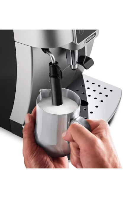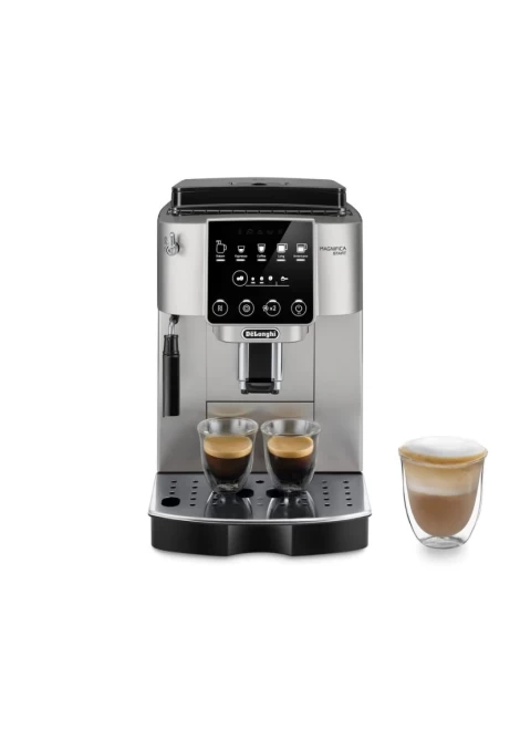 Enter the world of bean-to-cup coffee with De'Longhi Magnifica Start, providing everything you need to get started with your favourite espresso-based drinks at home. It features a user-friendly interface and silver & black finish, with a customised selection of beverages delivered with just one touch.