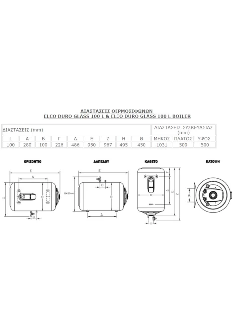 Χωρητικότητα : 100 λίτρα με BOILER