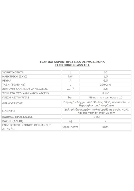 ELCO DURO GLASS 10L/1.5 Ηλεκτρικός Θερμοσίφωνας Κάθετος