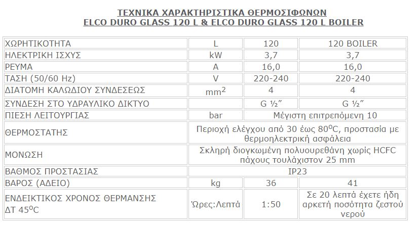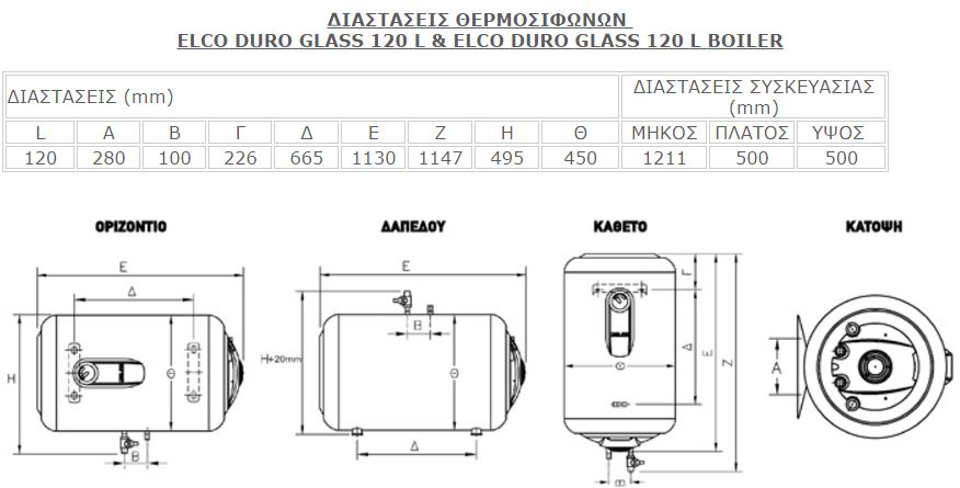 ELCO DURO GLASS 120L/4 BOILER Ηλεκτρικός Θερμοσίφωνας Κάθετος
