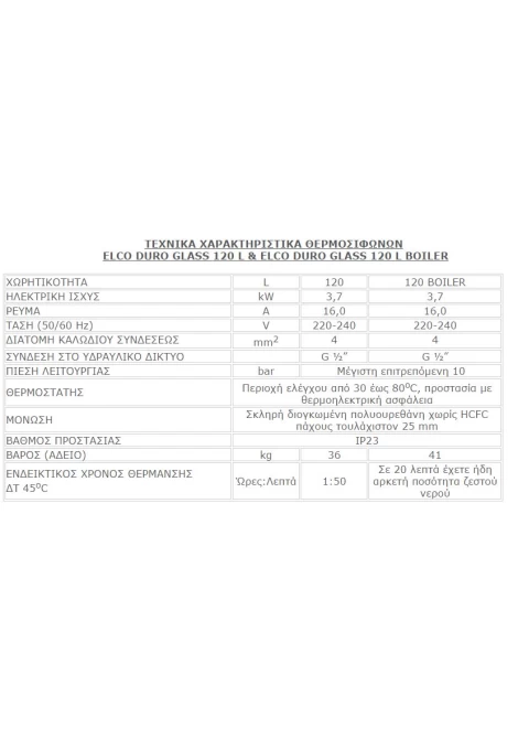 • Χωρητικότητα :120 λίτρα με BOILER
