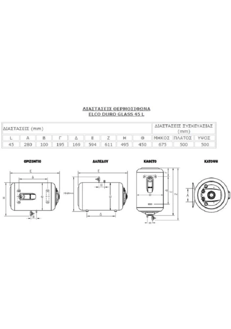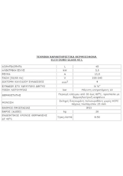 ELCO DURO GLASS 45L/3 Ηλεκτρικός Θερμοσίφωνας Δαπέδου