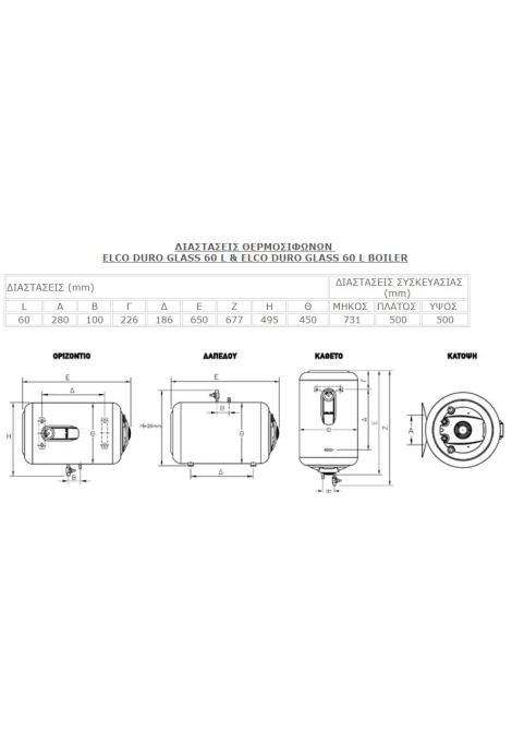 ELCO DURO GLASS 60L/3 Ηλεκτρικός Θερμοσίφωνας Δαπέδου