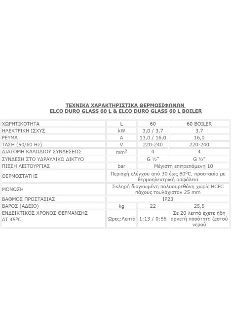 ELCO DURO GLASS 60L/4 Ηλεκτρικός Θερμοσίφωνας Δαπέδου