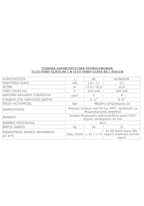 Χωρητικότητα :80 λίτρα με BOILER