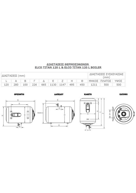 • Χωρητικότητα: 120 lt
