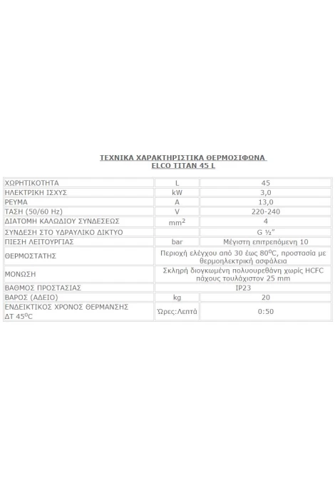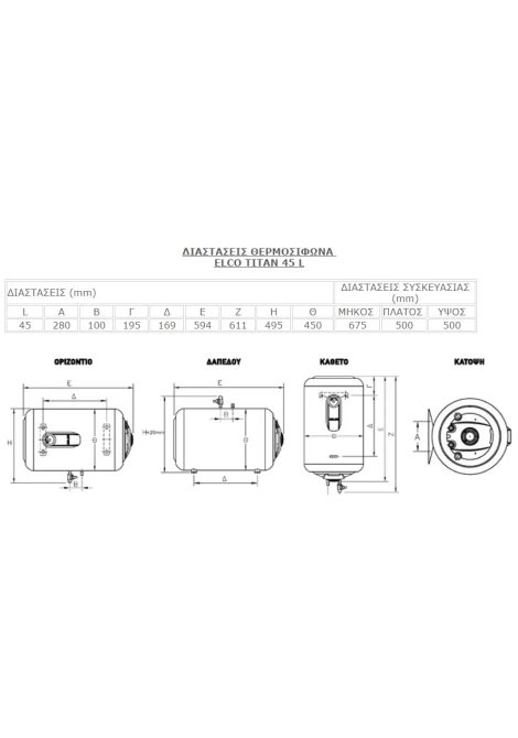 ELCO TITAN 45L/3 Ηλεκτρικός Θερμοσίφωνας Οριζόντιος