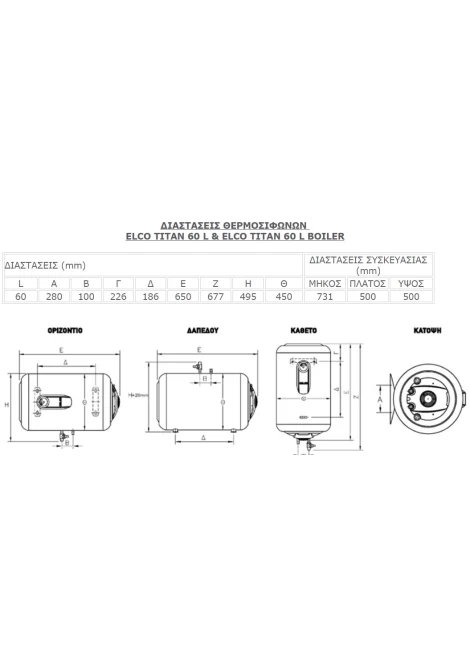 ELCO TITAN 60L/4 Ηλεκτρικός Θερμοσίφωνας Κάθετος