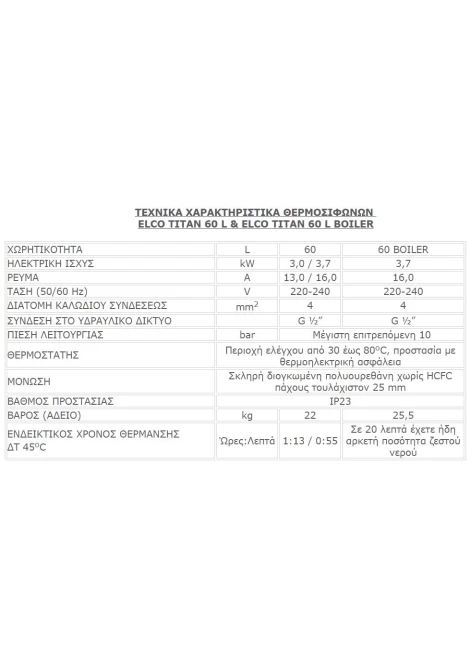 Χωρητικότητα :60 λίτρα με BOILER