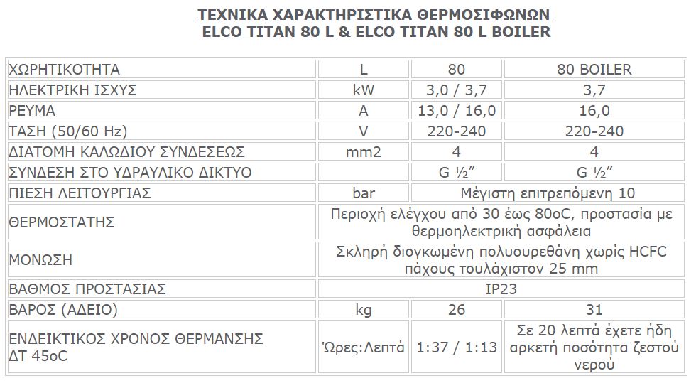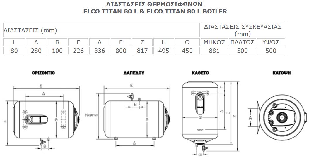 ELCO TITAN 80L/4 Ηλεκτρικός Θερμοσίφωνας Οριζόντιος