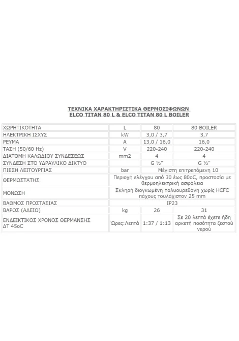• 2984|TITAN 80L/4 Ηλεκτρικός Θερμοσίφωνας Οριζόντιος