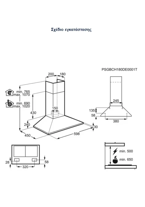 Electrolux EFC226R 300 LEDLights Απορροφητήρας Καμινάδα