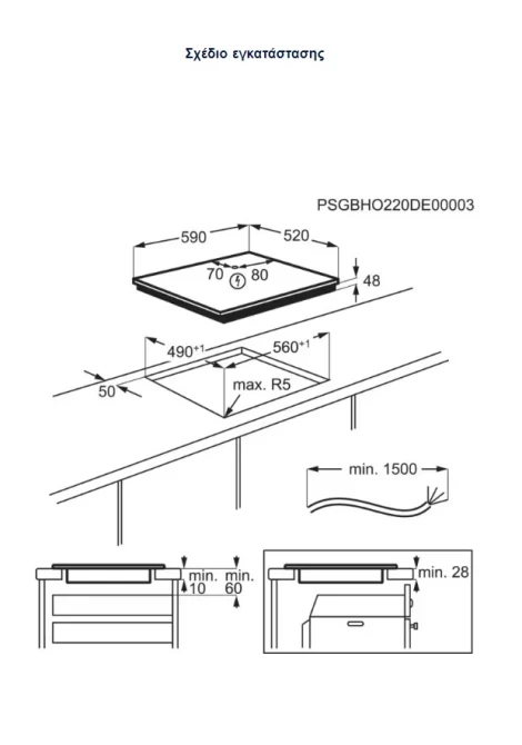 Διαστάσεις εστίας (Πλάτος,Βάθος) , mm: 590x520