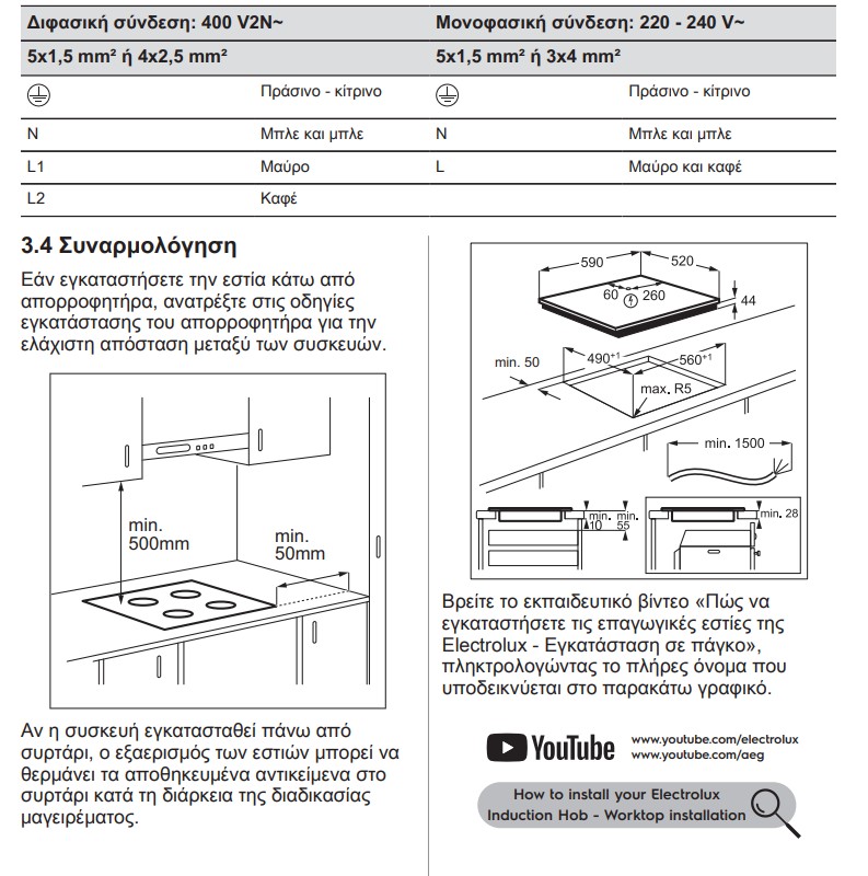 Διαστάσεις εστίας (Πλάτος,Βάθος) , mm: 590x520