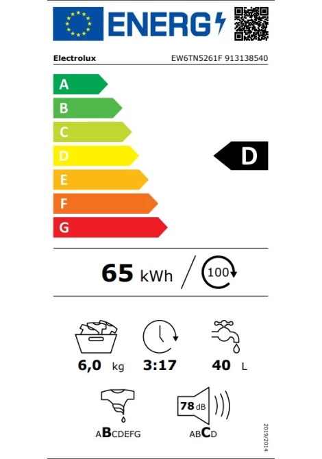 Electrolux EW6TN5261F 600 SensiCare Πλυντήριο Ρούχων