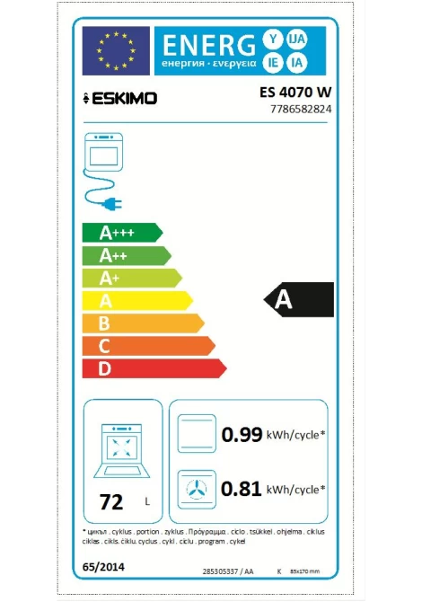 Eskimo ES 4070 W Εμαγιέ Κουζίνα