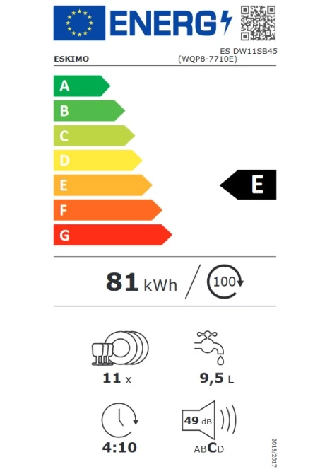 Eskimo ES DW11SB45 Ημιεντοιχιζόμενο Πλυντήριο Πιάτων