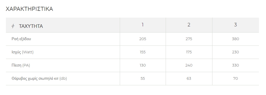 Απορροφητική ισχύς στην μέγιστη ταχύτητα: 380 m³/h