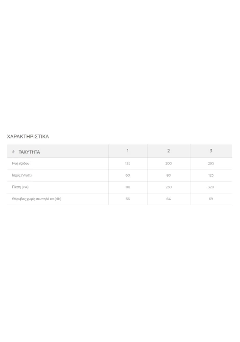 Απορροφητική ισχύς στην μέγιστη ταχύτητα: 295 m³/h