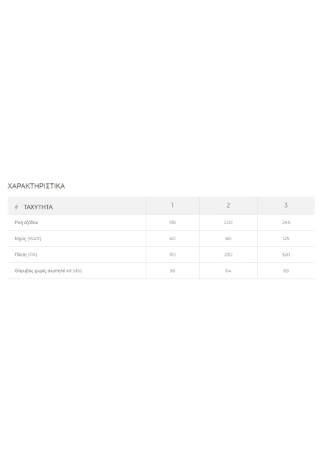 Απορροφητική ισχύς στην μέγιστη ταχύτητα: 295 m³/h