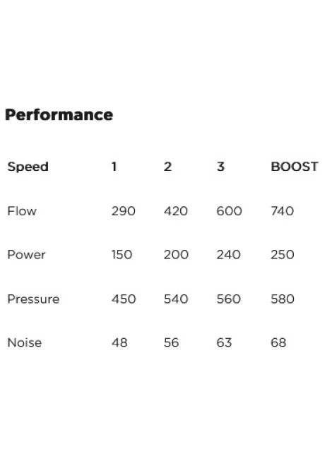 Μέγιστη ισχύς απορρόφησης 740 m³/h