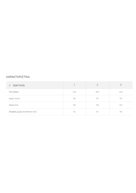 Απορροφητική ισχύς στην μέγιστη ταχύτητα: 420 m³/h