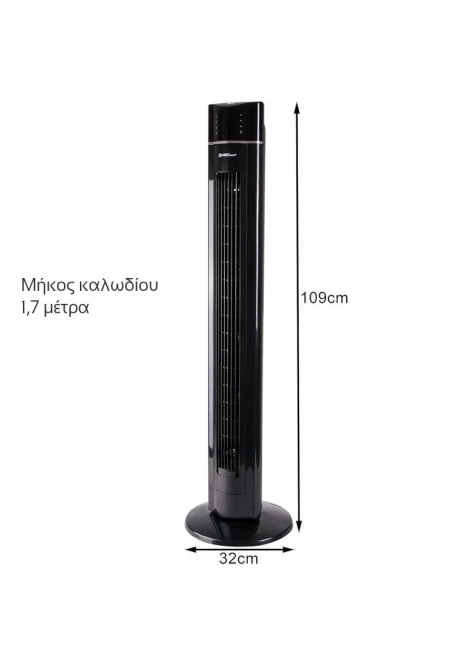 Ανεμιστήρας πύργος δαπέδου ισχύος 60W και ύψους 109 εκατοστών.