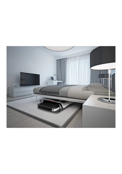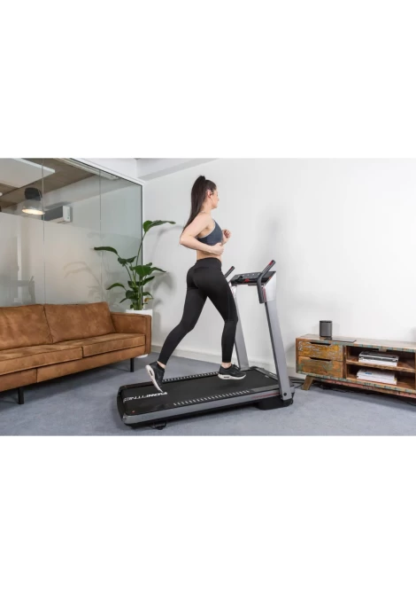 Ο ηλεκτρικός διάδρομος Flow Runner DTM400i αποτελεί την καλύτερη fitness επιλογή για να κάψετε θερμίδες και να χάσετε βάρος, αλλά και για να βελτιώσετε τη φυσική σας κατάσταση και αντοχή κάνοντας γυμναστική στην άνεση του σπιτιού σας. Μπορείτε να ξεκινήσετε σχεδόν αμέσως, καθώς αυτό το μηχάνημα γυμναστικής είναι κατά 99% προ-συναρμολογημένο και επομένως είναι έτοιμο για χρήση σε λιγότερο από ένα λεπτό. Διαθέτει ισχυρό και αθόρυβο κινητήρα με ταχύτητα έως 14 km/h και είναι κατάλληλος για χρήστες με βάρος έως 120 κιλά. Η άνετη επιφάνεια τρεξίματος με διαστάσεις 130x49 cm, σας επιτρέπει να κινείστε με ασφάλεια και σταθερότητα χωρίς κανένα περιορισμό ακόμη και στη μέγιστη ταχύτητα όπου ο βηματισμός είναι λιγότερο ελεγχόμενος.