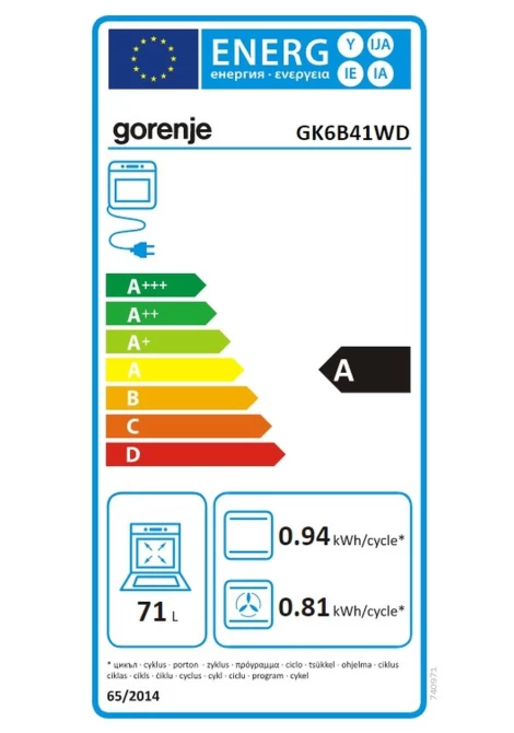 Ενεργειακή κλάση: A - Χρώμα: Λευκό