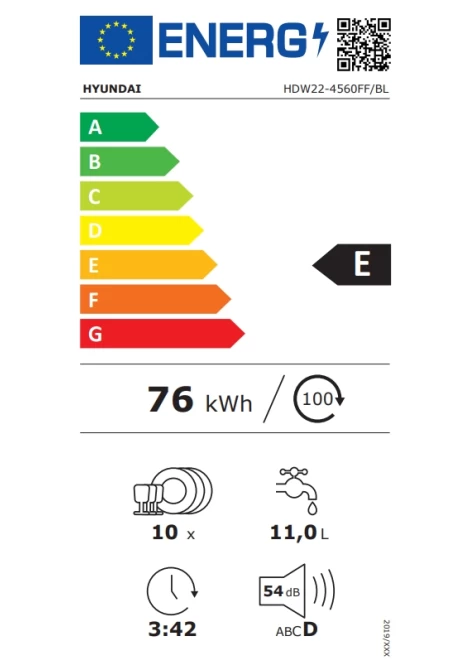 Το πλυντήριο πιάτων Hyundai HDW22-4560FF/BL με χωρητικότητα 10 σερβίτσια, 6 προγράμματα και ενεργειακή κλάση E, αποτελεί την ιδανική λύση για το αποτελεσματικό πλύσιμο των πιάτων σας. Με κατανάλωση ενέργειας 258kWh ανά έτος θα σας βοηθήσει επίσης και στην εξοικονόμηση ενέργειας.